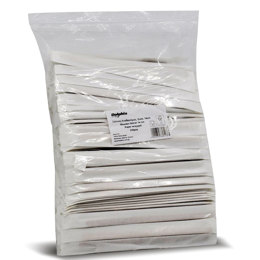 Home > Products > CATERING PRODUCTS HORECA DOLPHIN > DISPOSABLE FORKS - WOODEN STIRRERS DOLPHIN > WOODEN STIRRERS DOLPHIN PAPER WRAPPED
