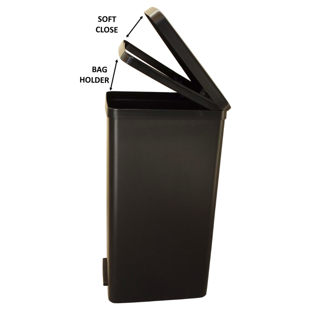 Το πεντάλ επιτρέπει εύκολη και υγιεινή χρήση χωρίς χέρια, ενώ το καπάκι με μηχανισμό soft-close εξασφαλίζει αθόρυβη λειτουργία. Ο αδιάβροχος σχεδιασμός αποτρέπει διαρροές, ενώ το εσωτερικό σύστημα συγκράτησης σακούλας κρατάει τις σακούλες σταθερές στη θέση τους. Ιδανικός για γραφεία, χώρους φιλοξενίας ή εμπορικούς χώρους, ο Κάδος ECO συνδυάζει πρακτικότητα, κομψότητα και οικολογική συνείδηση, καλύπτοντας τις ανάγκες κάθε επαγγελματικού περιβάλλοντος.