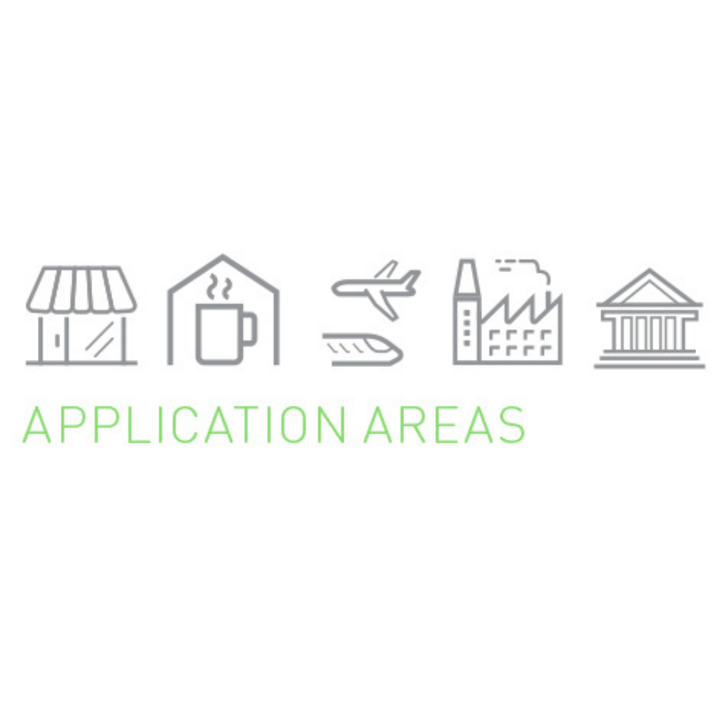 Μπορεί να χρησιμοποιηθεί σε δημόσια κτίρια, εταιρείες, HORECA, εμπορικά καταστήματα, βιομηχανίες, αεροδρόμια, σιδ. σταθμούς.