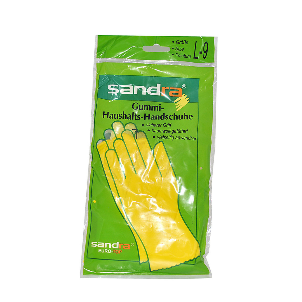 Ανθεκτικά γάντια οικιακής χρήσης SANDRA από λατέξ, που παρέχουν αποτελεσματική προστασία έναντι των κινδύνων για την υγεία σε οικιακές και επαγγελματικές εργασίες.